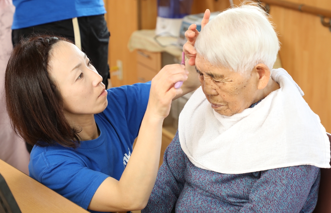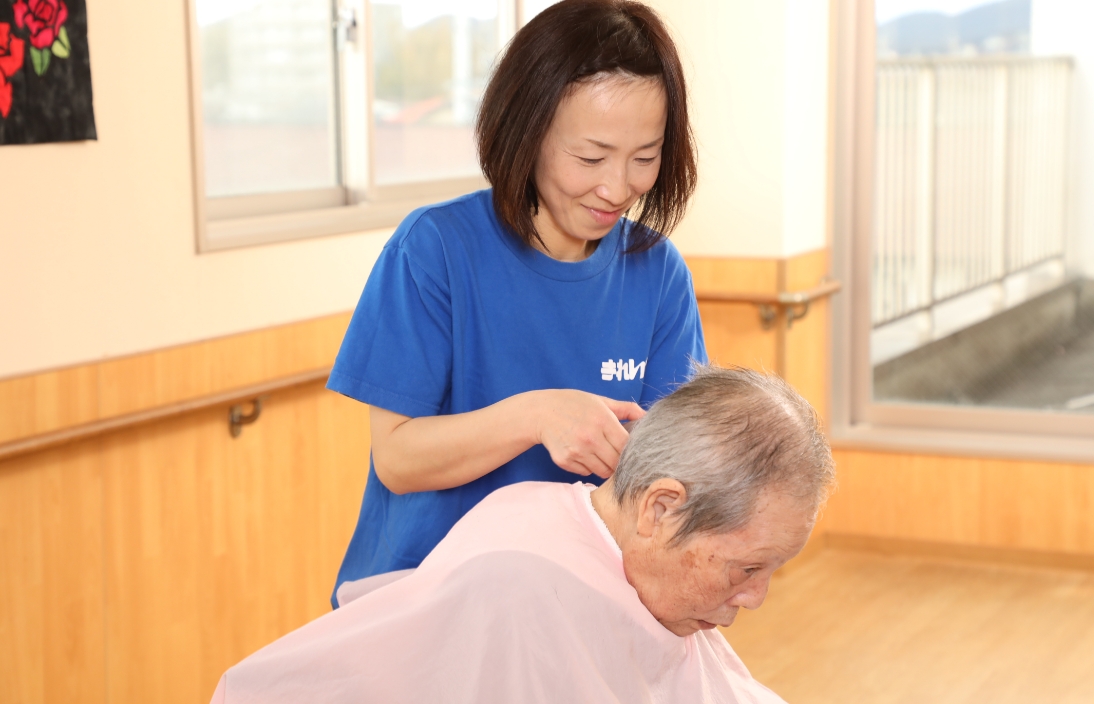 きれいや本舗の仕事の醍醐味は、利用者さんとのコミュニケーションにあります。実際は私たちが施設やご自宅に訪問してカットするのですが、利用者さんには“サロンにお出かけする”気持ちになっていただくことを心がけています。利用者さんの晴れやかな笑顔を見ると、私も嬉しくなります。